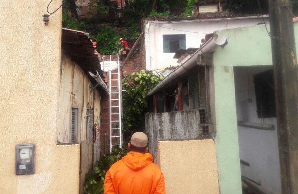 Bombeiros cortam árvore que caiu sobre casas na comunidade do Jacó, na Zona Leste de Natal (Foto: Maxwell Ferreira Clementino)