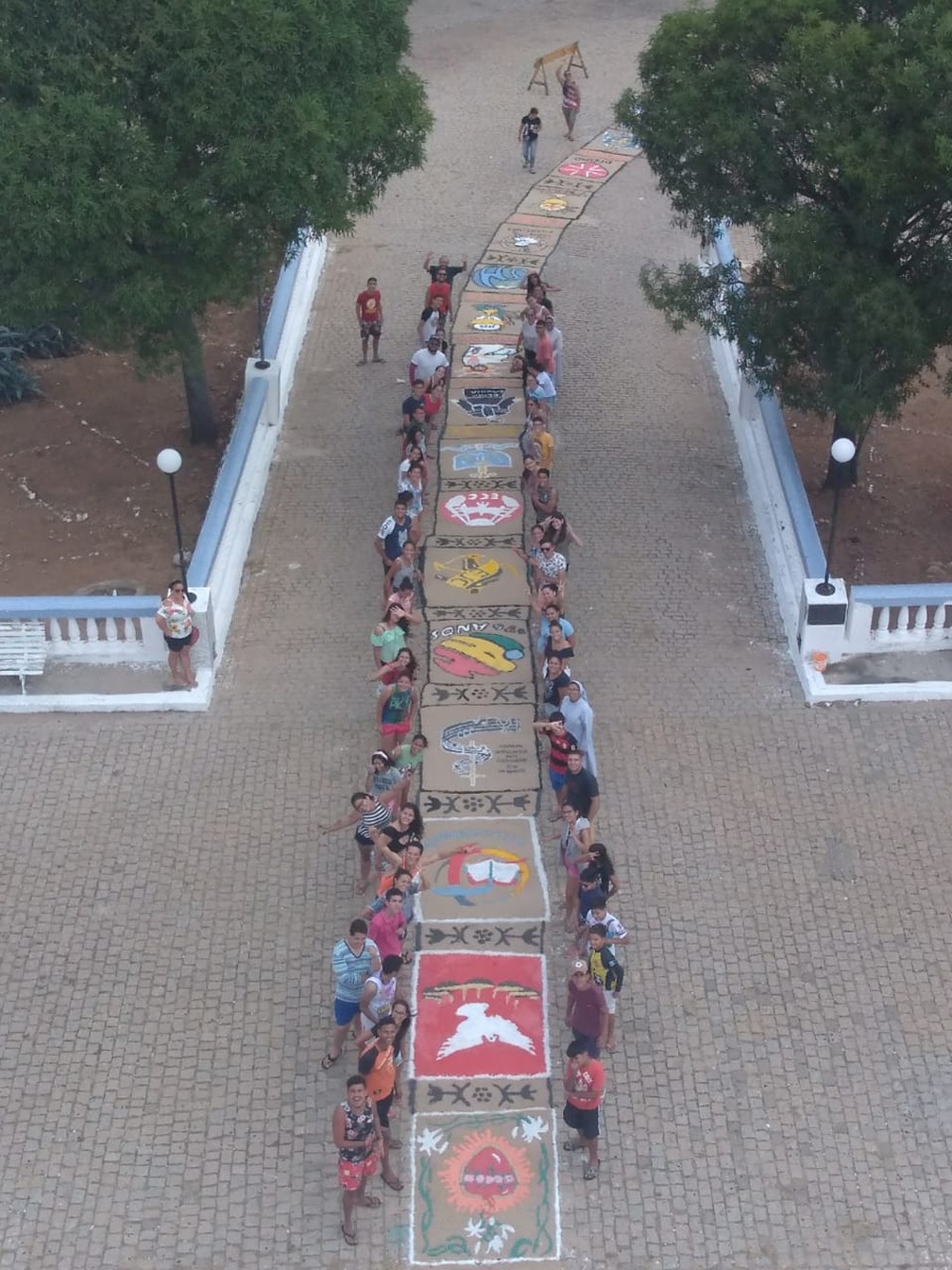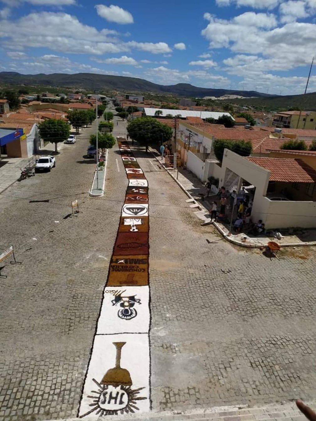 Tapete de Corpus Christi também ganhou a rua em Jardim do Seridó, no interior do Rio Grande do Norte — Foto: Wilkerson Pereira