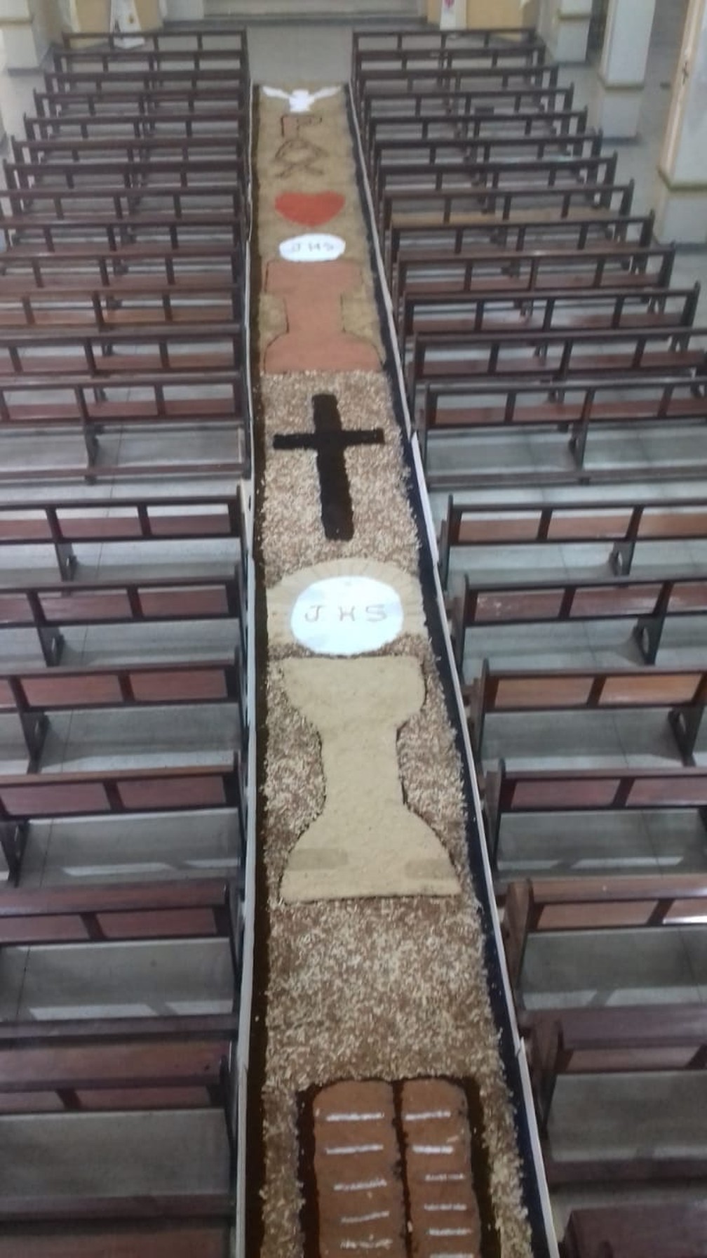 Imagem da Igreja de Nossa Senhora da Conceição, em Portalegre, Oeste do RN, com tapete para celebração de Corpus Christi — Foto: Samira Dantas