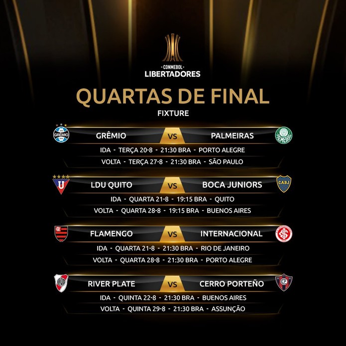 Tabela das quartas de final da Libertadores — Foto: Divulgação Conmebol